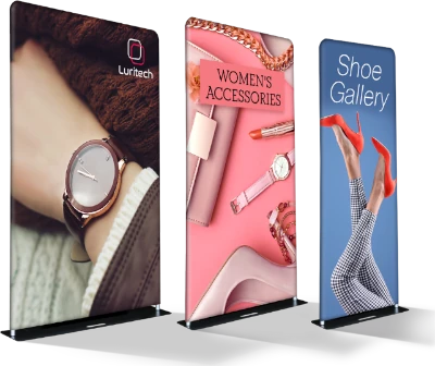We produce banners, backdrops, table throws, and pop-up displays for trade